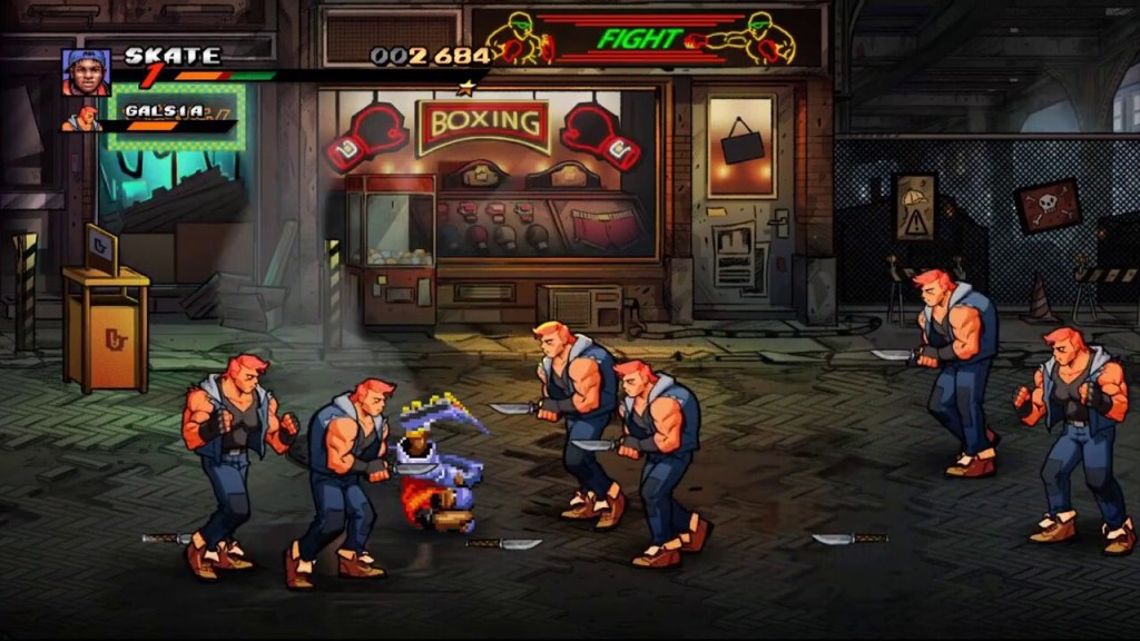 New to the cast are Cherry(Adam’s Daughter) and Floyd, a heavy metal brawler and cyborg titan, respectively(the former being my favorite in the game). Move variety is about what you’d expect; grabs, jumping attacks, specials and the like. What makes this entry of Streets Of Rage special though is the feedback. Each blow provides a satisfying hit of dopamine that others games in the genre(and this series) seem to lack. What surprised me about this entry was its’ uncanny ability to be tactical. Do I go straight after the knife-wielding goons or the heavy fire-breathers first? It’s a game the forces you to make quick decisions on the fly. Particularly if you want high scores.